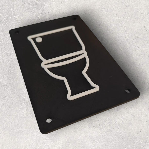 Skiltet er fremstillet i holdbare materialer, der sikrer lang levetid selv ved daglig brug og berøring. Den sorte baggrundsplade har en mat overflade, der modstår fingeraftryk, mens det hævede hvide toiletsymbol skaber en elegant kontrast, der er let genkendelig selv på afstand.