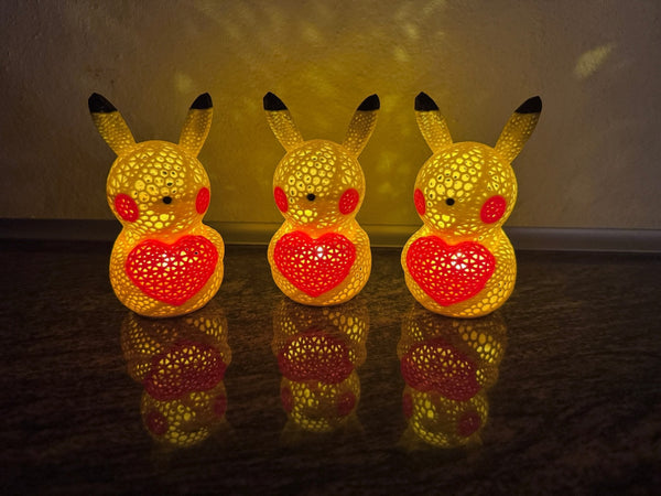 NUKD Pikachu Kærlighedslampe er mere end blot en lampe – den er en hyldest til kærlighed og kreativitet. Med sin perforerede struktur skaber lampen et smukt spil af lys og skygger, der fylder rummet med en blød og hyggelig atmosfære.