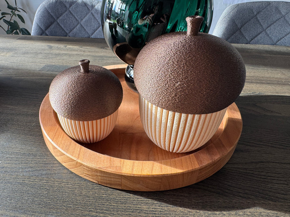 Bring et strejf af naturen ind i dit hjem med disse smukt designede Agern Beholder Dekorationer. Med inspiration fra agernets form er disse beholdere både funktionelle og dekorative. De kan bruges til opbevaring af småting og fungerer samtidig som en fyrfadslysholder, der skaber en varm og hyggelig atmosfære.