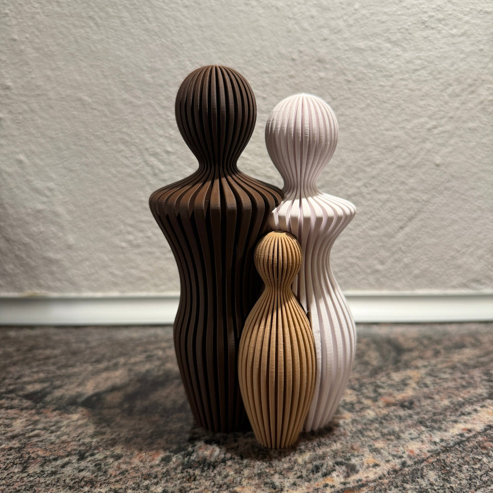 Designet, med to voksne og ét barn, er et minimalistisk symbol på den enhed, tryghed og kærlighed, der definerer jeres familie. Figurerne står samlet og repræsenterer det stærke fundament og den ubetingede kærlighed, I deler. Det er en varig hyldest til jeres helt egen historie.