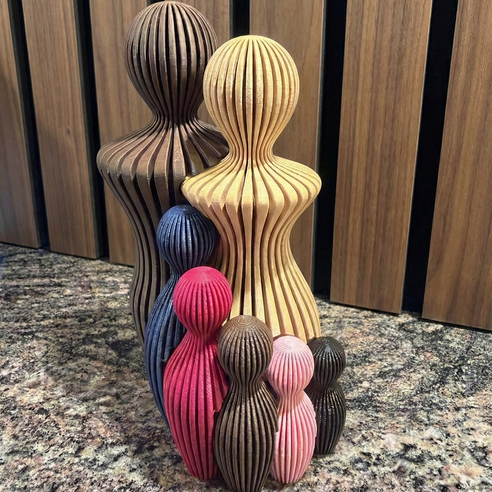 Denne skulptur, der viser to voksne og deres fem børn, er et smukt symbol på en livlig, kærlig og uerstattelig familie. Figurerne står samlet og fanger et øjeblik af stolthed, sammenhold og den dybe forbindelse, I har til hinanden.