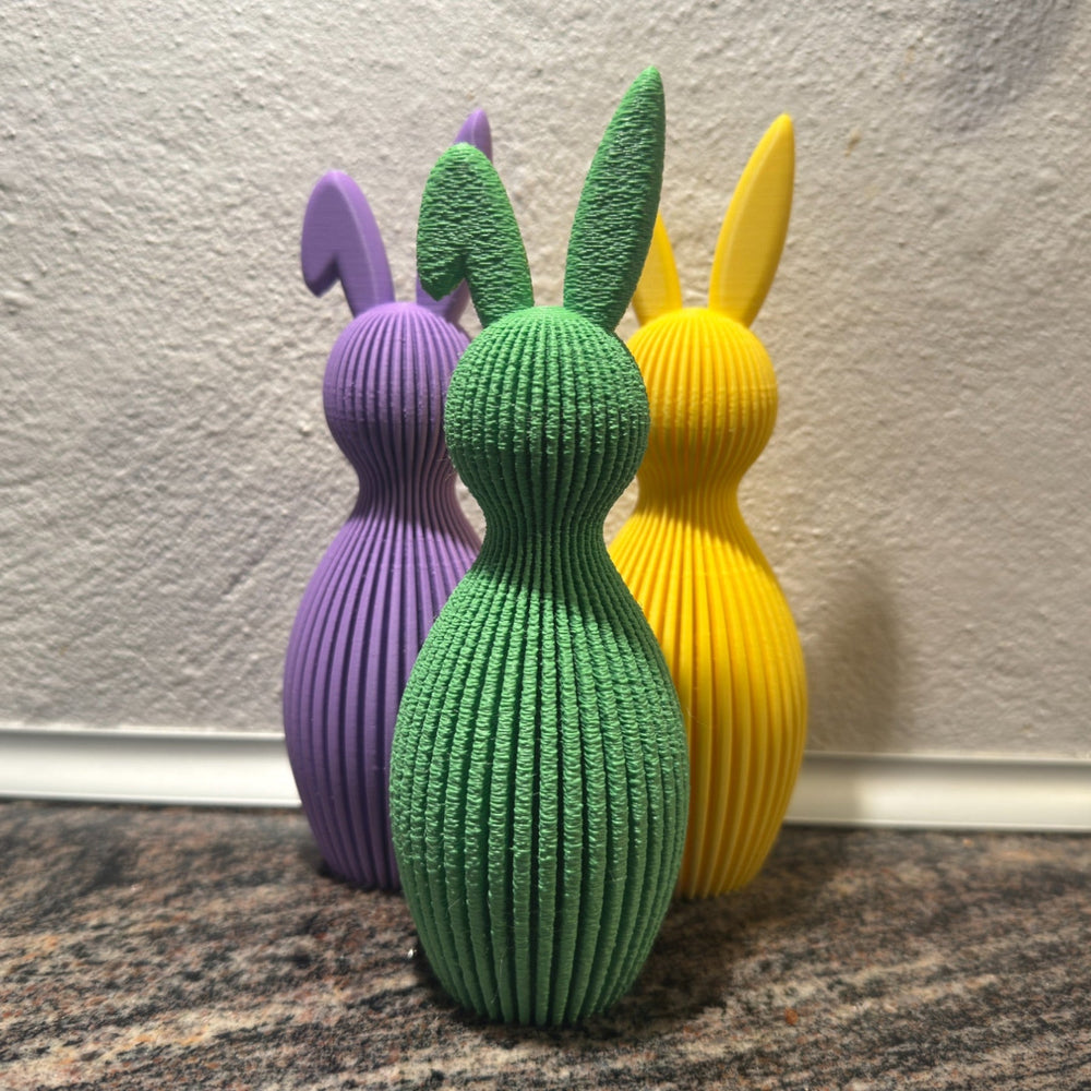 Sabre Glad Påskehare er en unik og minimalistisk dekoration, der kombinerer skandinavisk design med påskens klassiske symbolik. Med sin strømlinede, ribbede struktur skaber denne hare en stilren og moderne atmosfære, perfekt til både påskebordet, reolen eller vindueskarmen.