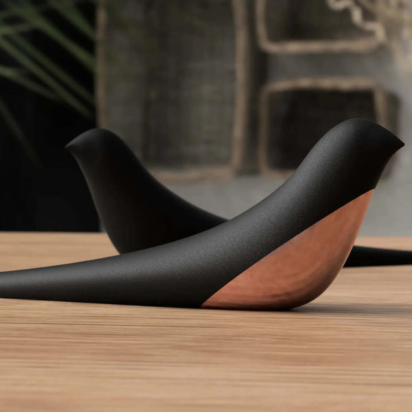Sabre Husfugl er en elegant, minimalistisk fuglefigur i sort med mulighed for personligt farvevalg på maven. Den enkle, skulpturelle form på 260 mm i længden tilfører et stilrent nordisk præg til enhver reol, hylde eller bord i det moderne hjem.