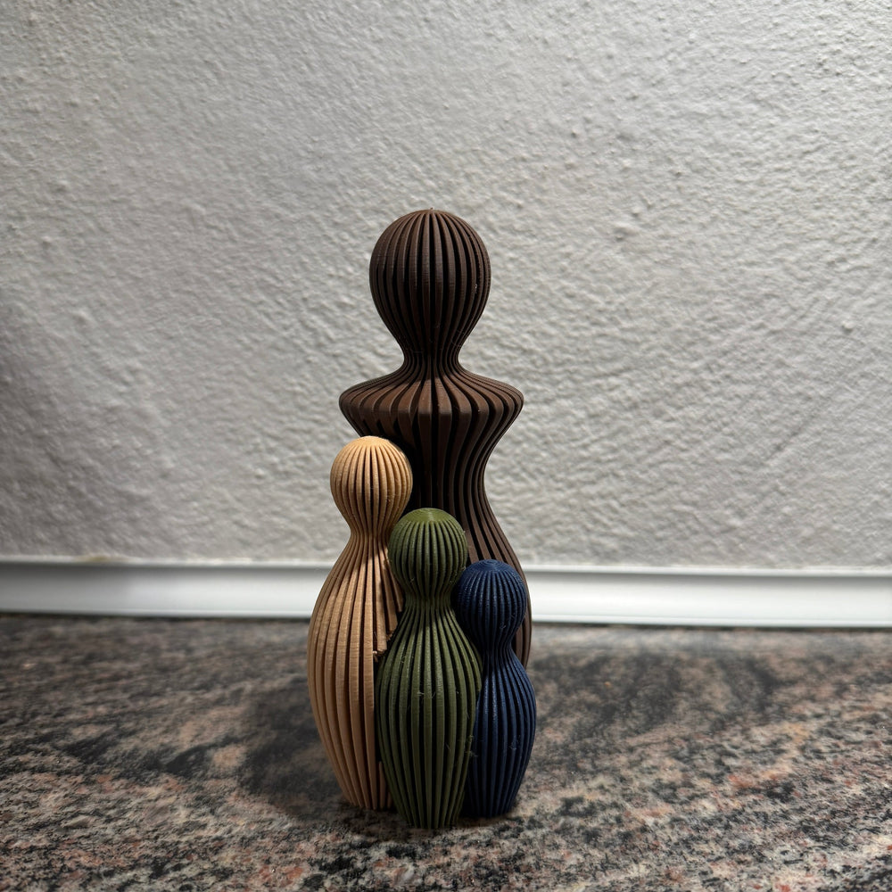 Med en mor omgivet af sine tre børn, er denne skulptur et stærkt symbol på omsorg, overflod og det livlige sammenhold, der definerer en familie. Den repræsenterer moderens rolle som den kærlige og beskyttende klippe, der skaber tryghed for hele børneflokken.