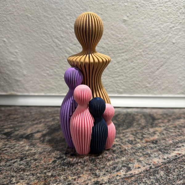 Denne skulptur, der viser en stolt mor med sine fire børn, er den ultimative hyldest til den store familie. Den fanger et øjeblik af stolthed, sammenhold og den dybe forbindelse, en mor har til hvert enkelt barn. Det er et smukt symbol på en livlig, kærlig og uerstattelig familie.
